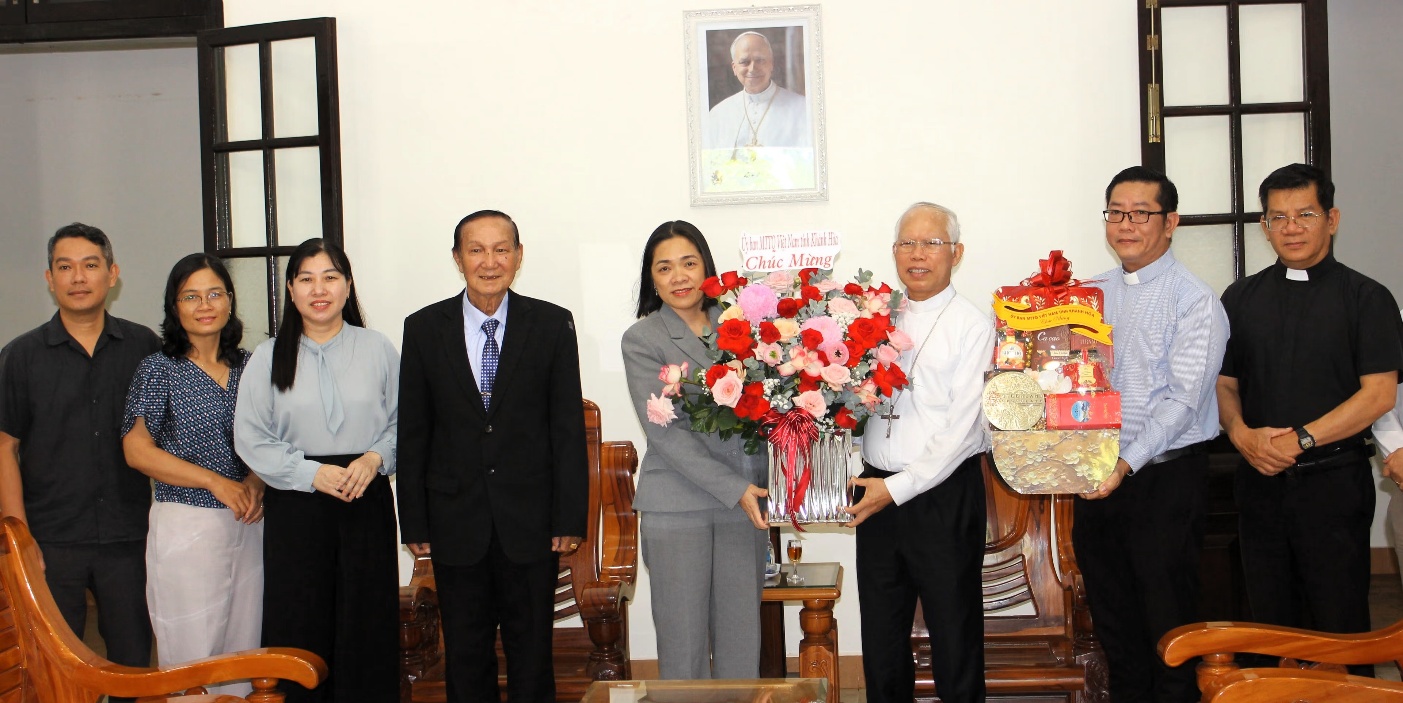 Thay mặt đồng bào Công giáo và Tin lành tại Khánh Hòa, các vị giám mục, linh mục, mục sư gửi lời cảm ơn tới sự quan tâm của Ủy ban MTTQ Việt Nam tỉnh đã dành cho các vị chức sắc, tôn giáo tại địa phương; đồng thời sẽ tiếp tục vận động đồng bào Kitô giáo chấp hành tốt chủ trương, đường lối của Đảng, chính sách, pháp luật của Nhà nước, tích cực tham gia các phong trào thi đua yêu nước, các Cuộc vận động, góp phần xây dựng cộng đồng bình yên, đoàn kết, nghĩa tình.