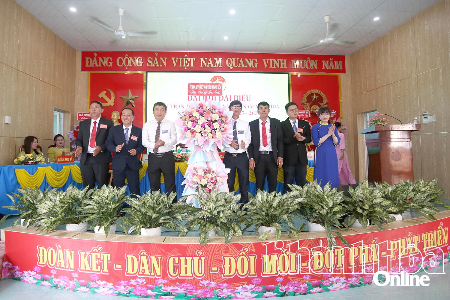| Đại diện Ủy ban MTTQ Việt Nam tỉnh tặng hoa chúc mừng đại hội. |