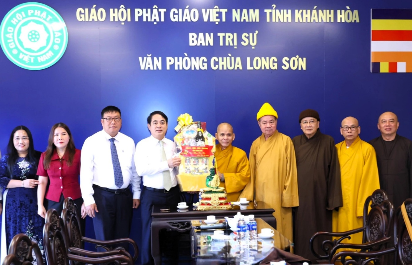 Bí thư Tỉnh ủy Nghiêm Xuân Thành tặng quà Ban Trị sự Giáo hội Phật giáo Việt Nam tỉnh.