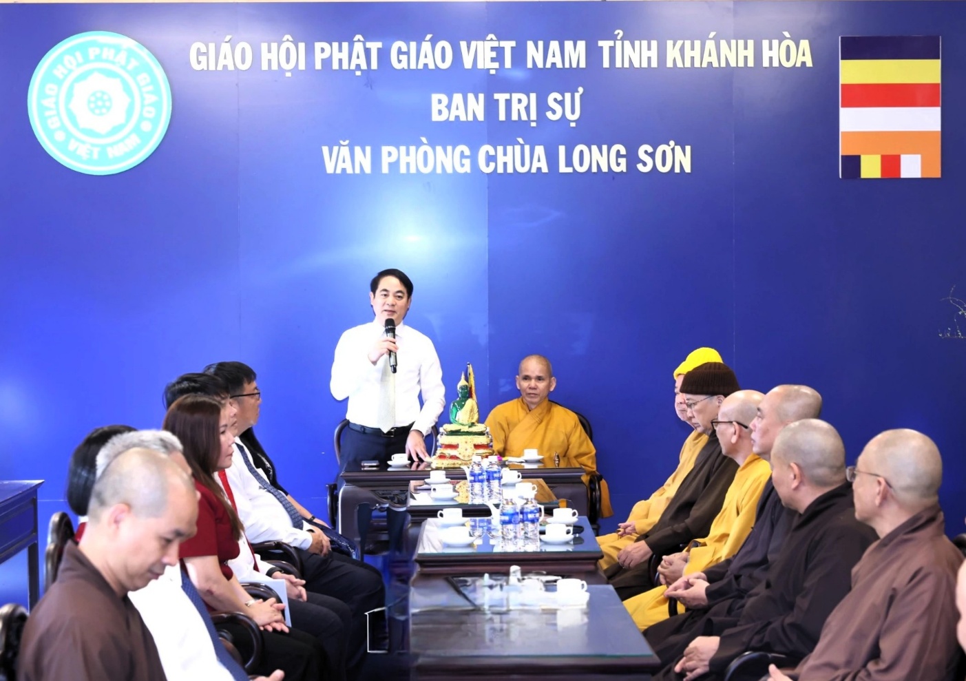 Bí thư Tỉnh ủy Nghiêm Xuân Thành phát biểu tại buổi thăm Ban Trị sự Giáo hội Phật giáo Việt Nam tỉnh