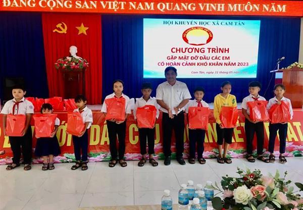 Tại buổi tặng quà, Ông Trần Công Hòa – Chủ tịch UBMT xã - Chủ tịch Hội Khuyến học xã Cam Tân đã gửi lời thăm hỏi đến các em học sinh có hoàn cảnh đặc biệt khó khăn lời chúc sức khỏe và động viên các em cố gắng vượt qua mọi khó khăn, phấn đấu đạt thành tích cao trong học tập cho những năm học tiếp theo. Hội Khuyến học đã tặng 20 phần quà, mỗi phần quà trị giá 250.000 đồng. Tổng kinh phí là 5.000.000 đồng