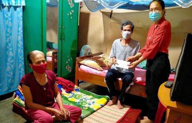 Bà Huỳnh Nữ Hoàng Trúc - Chủ tịch Ủy ban MTTQ Việt Nam phường trao quà cho ông Võ Chín