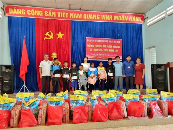 Ngày 21/8 Ủy ban Mặt trận Tổ quốc Việt Nam phường Phước Long tổ chức đoàn thăm, tặng quà các hộ nghèo và trao học bổng cho học sinh có hoàn cảnh khó khăn tại xã Thành Sơn - huyện Khánh Sơn.