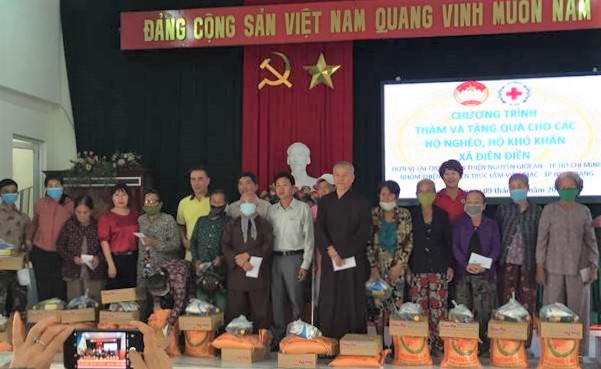 Nhân Tháng hành động vì người nghèo, ngày 9/11/2022, tại Hội trường ủy ban nhân dân xã Diên Điền, huyện Diên Khánh, Ủy ban Mặt trận xã Diên Điền tiếp nhận từ Nhóm Thiện Nguyện Giới An - TP.HCM và nhóm Thiện Nguyện Trúc Lâm Viên Giác - TP.Nha Trang 100 xuất quà trao cho hộ nghèo, hộ cận nghèo, hộ có hoàn cảnh khó khăn trên địa bàn xã Diên Điền.