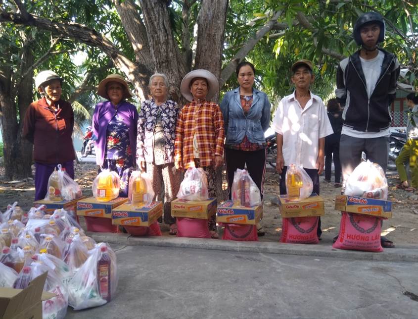 Sáng ngày 21/4/2019, tại nhà ông Nguyễn Tâm - xóm 2 thôn Thủy Triều, xã Cam Hải Đông, huyện Cam Lâm, Uỷ Ban MTTQ Việt Nam xã Cam Hải Đông đã phối hợp với UBND xã vận động ông Nguyễn Tâm - Việt kiều Mỹ tặng 150 suất quà (mỗi suất trị giá 300.000đ) cho 150 hộ thuộc diện hộ nghèo, hộ cận nghèo, gia đình khó khăn, gia đình neo đơn trên địa bàn xã Cam Hải Đông và hỗ trợ chùa Thanh Sơn - xã Cam Hải Đông - huyện Cam Lâm 01 tấn gạo.