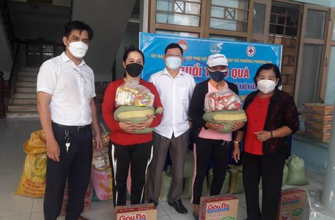 Thiết thực chào mừng Ngày giải phóng miền Nam thống nhất đất nước 30/4/1975 – 30/4/2022, sáng ngày 28/4, Ủy ban Mặt trận - Hội LHPN – Hội chữ thập đỏ phường Phương Sài đã phối hợp tổ chức buổi trao quà hỗ trợ gia đình khuyết tật, khó khăn trên địa bàn.