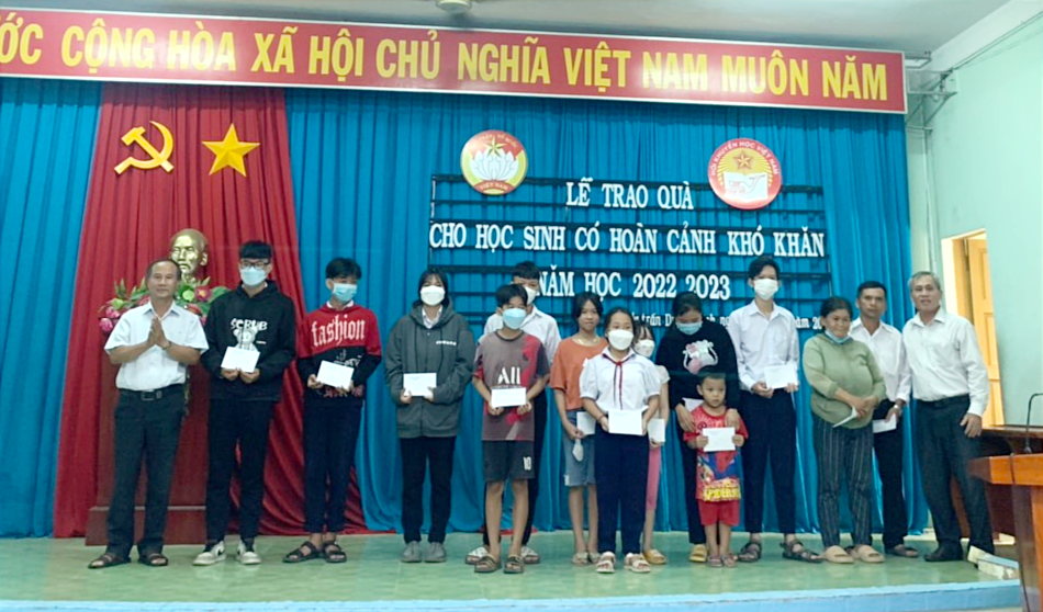 Nhằm tạo điều kiện giúp đỡ cho các em học sinh có hoàn cảnh đặc biệt khó khăn vươn lên trong học tập, sáng 18/9/2022, Ủy ban Mặt trận phối hợp với Ủy ban nhân dân và Hội khuyến học thị trấn Diên Khánh (huyện Diên Khánh) tổ chức trao 40 suất quà cho các em học sinh thuộc diện hộ nghèo, hộ cận nghèo và hộ có hoàn cảnh đặc biệt khó khăn; mỗi suất quà trị giá 500.000đ, tổng kinh phí quà tặng là 20.000.000đ. Kinh phí này được trích từ nguồn Quỹ “Vì người nghèo” thị trấn Diên Khánh.