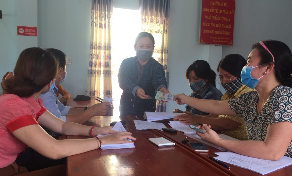 Tổ cấp phát làm nhiệm vụ chi trả tiền cho các đối tượng có hoàn cảnh khó khăn do ảnh hưởng dịch covid-19 theo qui định