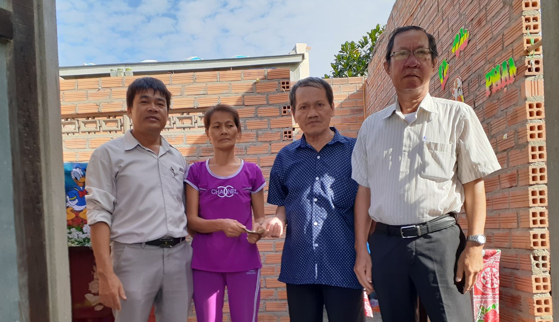 Bà Trần Thị Kim Yến-Chủ tịch Ủy ban MTTQ Việt Nam xã và Ban Công tác mặt trận thôn Lễ Thạnh thăm và hỗ trợ kinh phí cho hộ gia đình chị Đỗ Thị Khiêm