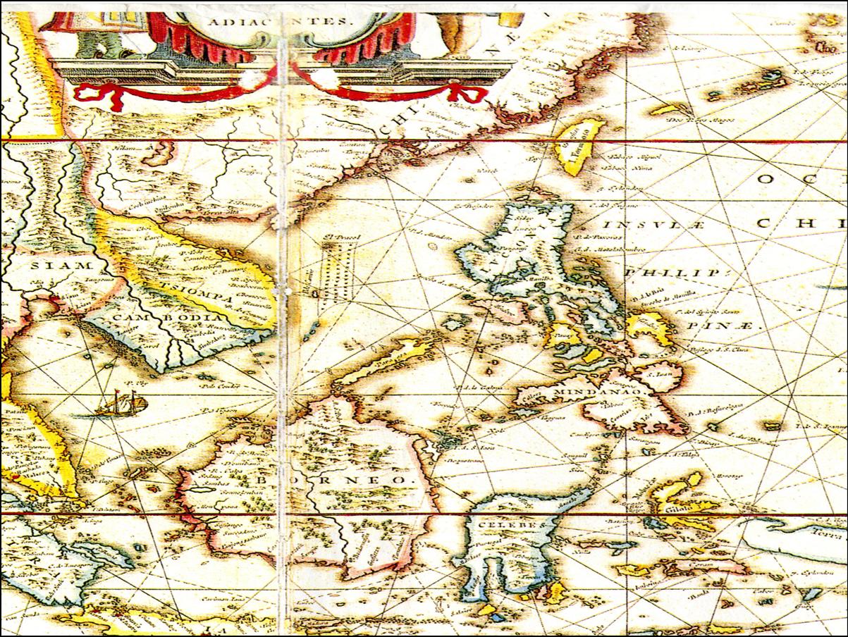 Bản đồ hàng hải Châu Âu (TK 15 - 16), thể hiện hai quần đảo Hoàng Sa và Trường Sa như hình cờ đuôi nheo.