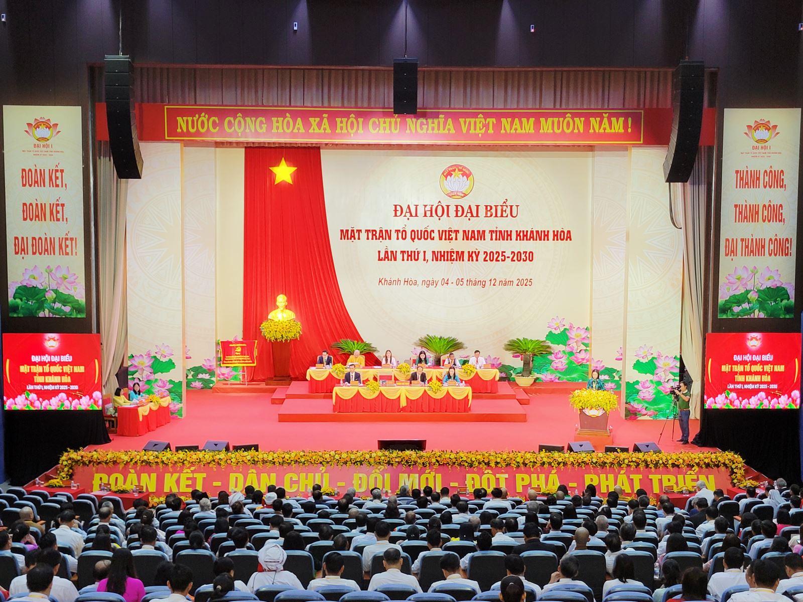 Hôm nay (ngày 05/12/2025), Đại hội đại biểu MTTQ Việt Nam tỉnh Khánh Hòa lần thứ I, nhiệm kỳ 2025 - 2030 chính thức khai mạc. Đây là sự kiện chính trị đặc biệt quan trọng của khối đại đoàn kết toàn dân tộc trong tỉnh, góp phần cổ vũ, động viên các tầng lớp Nhân dân, khơi dậy tinh thần yêu nước, khát vọng cống hiến, xây dựng và phát triển tỉnh nhà trong kỷ nguyên mới.