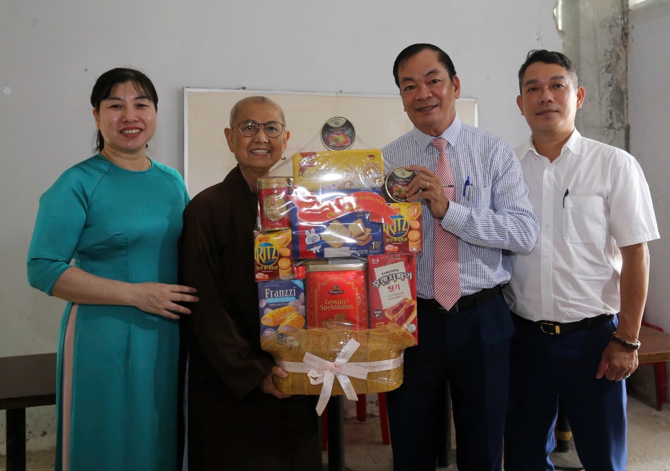 Đồng chí Nguyễn Văn Thiện thăm, tặng quà trụ trì Niệm phật đường Bồ Đề.