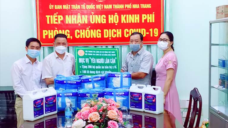 Theo đó, Ủy ban Mặt trận Tổ quốc Việt Nam thành phố đã trao tặng cho Trạm Y tế các địa phương gồm: Ngọc Hiệp, Vĩnh Hải, Vĩnh Ngọc, Vĩnh Nguyên, Vạn Thắng, Phương Sài, Vĩnh Thái, Phương Sơn, Vĩnh Phương, Vĩnh Hiệp. Mỗi Trạm Y tế được nhận hỗ trợ 10 lít dung dịch sát khuẩn tay và 20 bộ đồ bảo hộ y tế để phục vụ công tác phòng chống dịch bệnh Covid-19 tại địa phương.