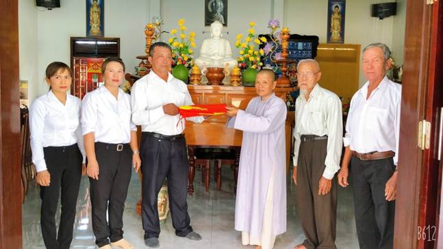 Trong buổi tặng cờ, Chủ tịch Ủy ban MTTQ Việt Nam và lãnh đạo UBND xã đã tuyên truyền, vận động, hướng dẫn các Cơ sở tôn gíáo việc treo cờ Tổ quốc trong dịp lễ , các sự kiện lớn của các tổ chức tôn giáo, bảo đảm trang trọng, nghiêm túc và theo đúng quy định, hướng dẫn của Chính quyền, Ủy ban Mặt trận Tổ quốc Việt Nam và các tổ chức chính trị. Tuyên truyền về ý nghĩa của việc treo cờ Tổ quốc là thể hiện lòng yêu nước, niềm tự hào dân tộc, thể hiện sự gắn kết, hòa mình trong lòng dân tộc và truyền thống đại đoàn kết của các tôn giáo góp phần lan tỏa tinh thần đoàn kết, chung sức, đồng lồng xây dựng quê hương, đất nước.