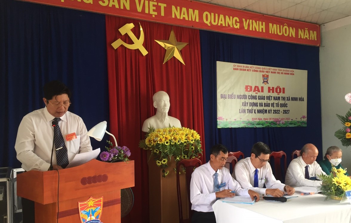Sáng nay, ngày 08-7-2022, tại hội trường Khu liên cơ Mặt trận và các đoàn thể thị xã Ninh Hòa, Ban Đoàn kết Công giáo thị xã Ninh Hòa tổ chức thành công Đại hội đại biểu Người Công giáo Việt Nam thị xã Ninh Hòa xây dựng và bảo vệ Tổ quốc lần thứ V, nhiệm kỳ 2022-2027.