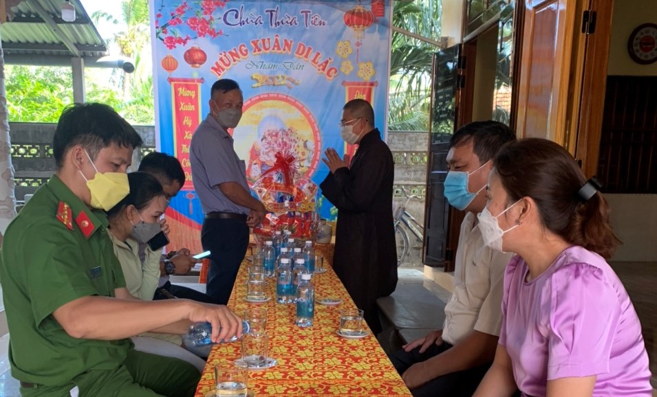 Đoàn công tác của xã thăm hỏi và tặng quà tại Chùa Thừa Tiên
