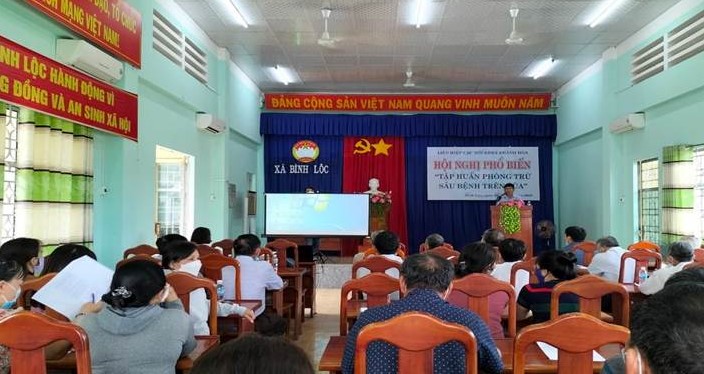 Sáng ngày 29 tháng 3 năm 2022, Ủy ban Mặt trận TQVN xã Bình Lộc phối hợp với đơn vị Liên hiệp các Hội Khoa học và Kỹ thuật tỉnh Khánh Hòa tổ chức lớp tập huấn phòng trừ sâu bệnh hại lúa cho cán bộ làm công tác Mặt trận thôn, cùng hội viên, nông dân, các hộ chuyên sản xuất lúa giống trên địa bàn xã.