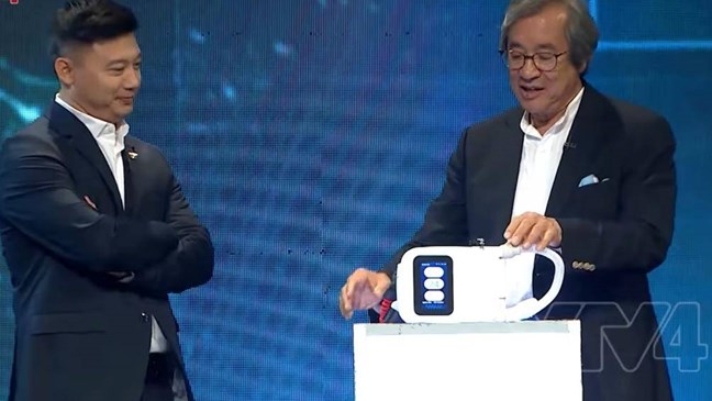Nhà sáng chế Trần Ngọc Phúc giới thiệu chiếc máy trợ thở của mình trên một chương trình của VTV.