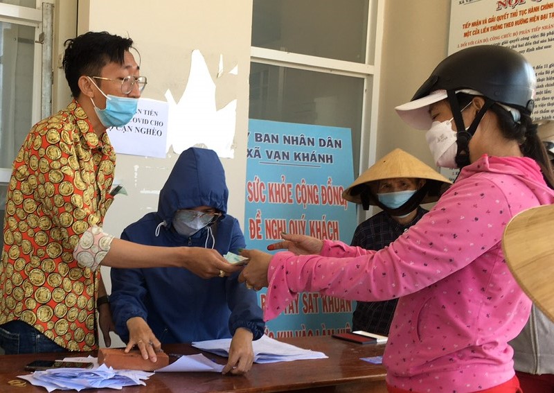 Ngày 22/01/2022 tại trụ sở UBND xã Vạn Khánh (huyện Vạn Ninh), Mặt trận và các đoàn thể phối hợp với UBND xã trao tiền hỗ trợ người thuộc hộ nghèo, hộ cận nghèo gặp khó khăn do đại dịch Covid-19 tại địa phương theo Công văn số 13278/UBND-KGVX ngày 28/12/2021 của UBND tỉnh Khánh Hoà về việc triển khai hỗ trợ người thuộc hộ nghèo, hộ cận nghèo gặp khó khăn do đại dịch Covid-19 trên địa bàn tỉnh Khánh Hoà. Đồng thời thực hiện giám sát việc chi tiền hỗ trợ đảm bảo việc hỗ trợ đúng đối tượng, công bằng, chính xác, kịp thời và ngăn chặn các hành vi trục lợi, vi phạm trong thực hiện chính sách.
