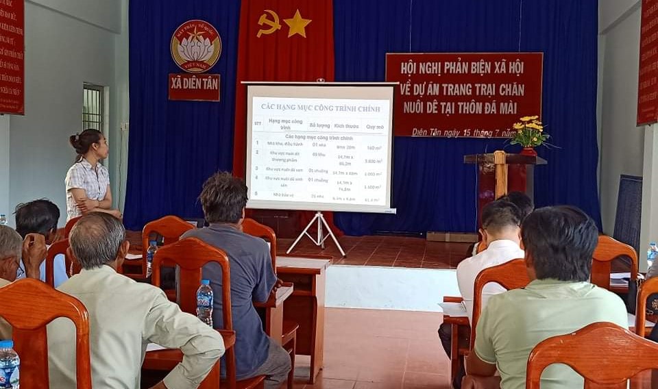 Phát huy vai trò của Mặt trận Tổ quốc Việt Nam, các Đoàn thể chính trị - xã hội đại diện, bảo vệ quyền và lợi ích hợp pháp, chính đáng của Nhân dân, góp phần nâng cao hiệu lực, hiệu quả quản lý nhà nước, hiệu quả hoạt động của các cơ quan, tổ chức trong hệ thống chính trị, ngày 15/7/2020, Ủy ban MTTQ Việt Nam xã Diên Tân tổ chức hội nghị phản biện xã hội đóng góp ý kiến vào dự án trang trại chăn nuôi dê tại thôn Đá Mài, xã Diên Tân, huyện Diên Khánh.