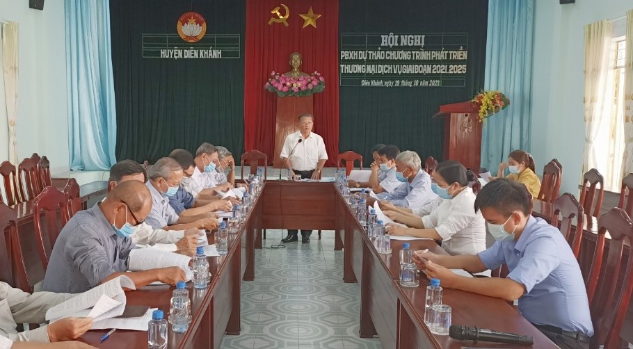 Sáng ngày 19/10/2021, Ban Thường trực Ủy ban MTTQ Việt Nam huyện chủ trì phối hợp tổ chức Hội nghị phản biện xã hội dự thảo Chương trình phát triển Thương mại, Dịch vụ huyện Diên Khánh giai đoạn 2021 – 2025.