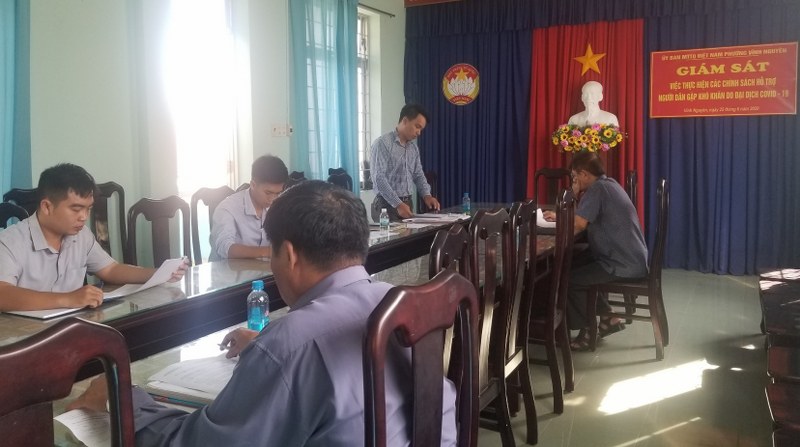Ủy ban MTTQ Việt Nam phường giám sát việc thực hiện các chính sách hỗ trợ người dân gặp khó khăn do đại dịch Covid-19 trên địa bàn phường Vĩnh Nguyên
