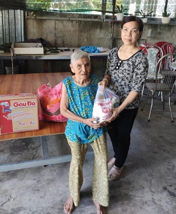 Trưởng Ban CTMT thôn trực tiếp đến nhà phát quà cho hộ già cả neo đơn