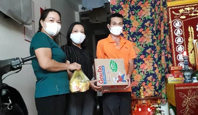 Chị Mai trong dịp phối hợp cũng Mặt trận phường tặng quà hỗ trợ cho người dân
