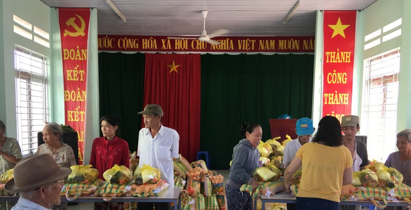 Ban Công tác Mặt trận khu dân cư Lợi Hung phát quà cho người nghèo