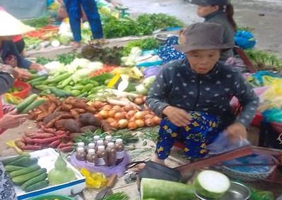 Chị Đặng Thị Sâu đang bán hàng tại chợ
