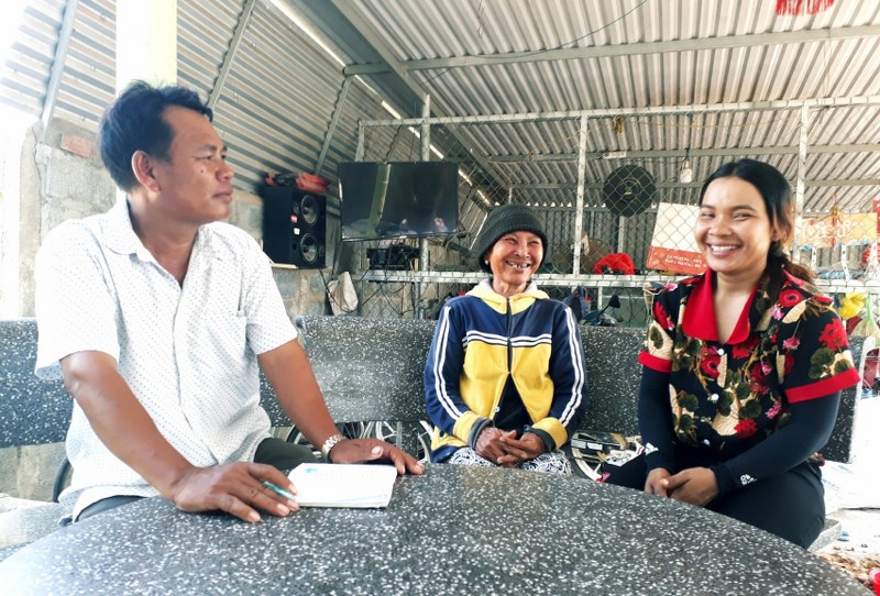 Ông Mang Nhia (bìa trái) trong một lần đến tuyên truyền cho người dân tại nhà