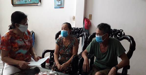 Chị Mơ (bên trái) vận động gia đình hội viên trong công tác phòng, chống dịch Covid-19