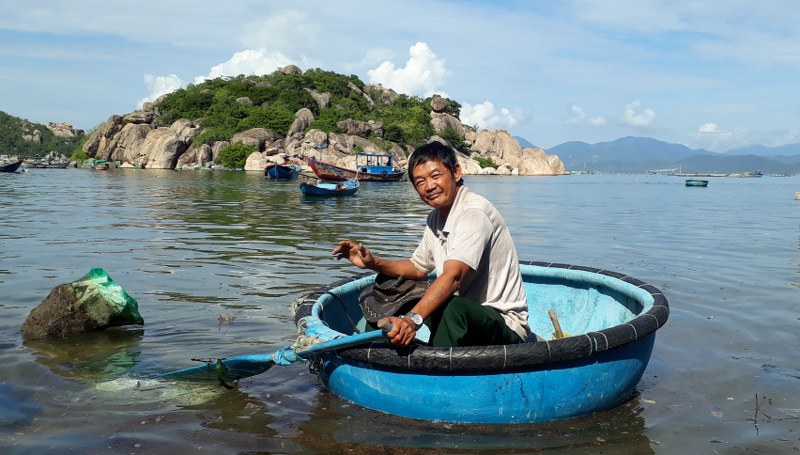 Ông Phạm Văn May sau buổi lao động buổi sáng trên biển