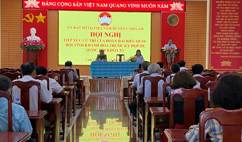 Sáng ngày 11/5/2022, tại Hội trường Huyện ủy Cam Lâm, đoàn Đại biểu Quốc Hội tỉnh Khánh Hòa tổ chức tiếp xúc cử tri trước kỳ họp thứ 3, Quốc hội khóa XV. Tham dự buổi tiếp xúc có ông Ngô Văn Bảo - Phó Bí thư Huyện ủy, Chủ tịch UBND huyện Cam Lâm, đại diện lãnh đạo Hội đồng nhân dân, Ủy ban nhân dân, Ủy ban MTTQ Việt Nam huyện, các ban, ngành, đoàn thể huyện, lãnh đạo 14 xã, thị trấn và cùng với cử tri huyện Cam Lâm.