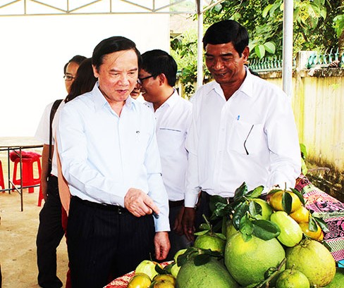Ông Nguyễn Khắc Định tham quan khu trưng bày sản vật địa phương.