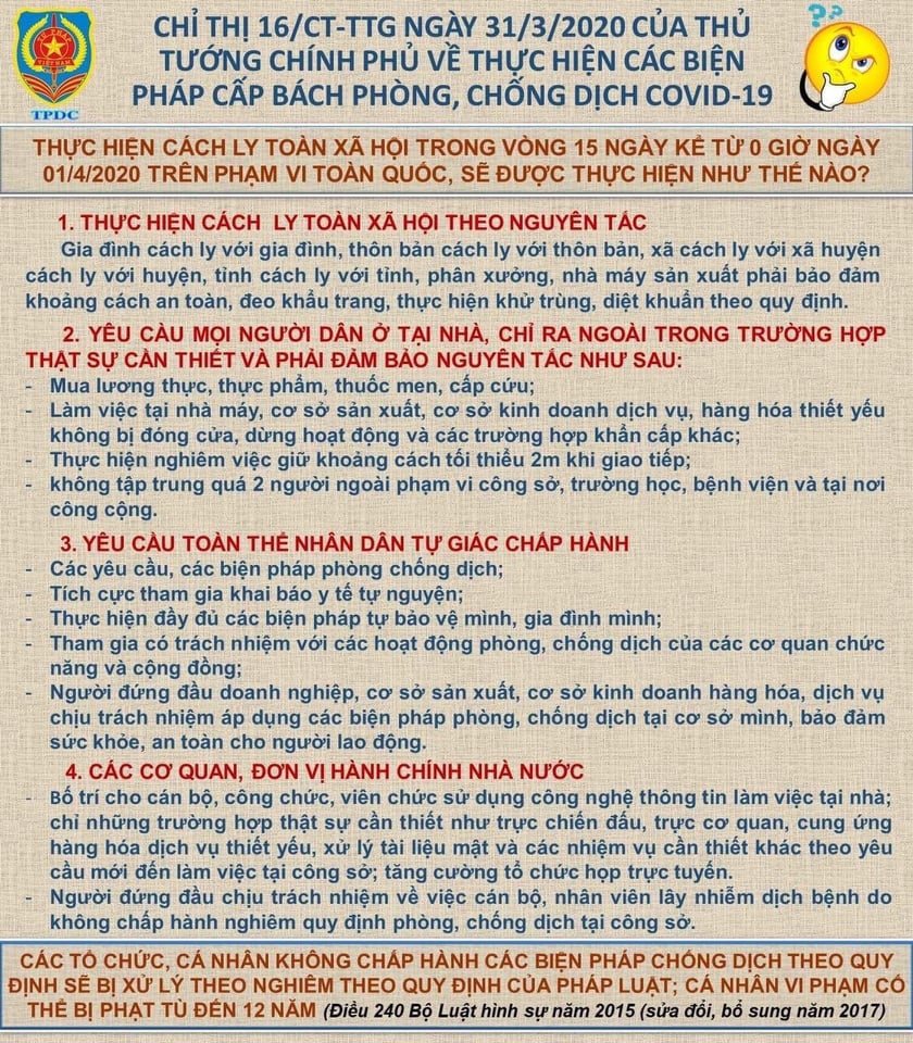- CÁCH LY TOÀN XÃ HỘI TRONG VÒNG 15 NGÀY CHỈ RA NGOÀI TRONG TRƯỜNG HỢP NÀO? (31/03/2020)