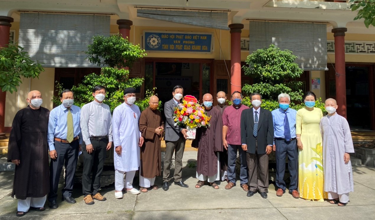 Sáng 5/11, ông Huỳnh Mộng Giang - Phó Chủ tịch Ủy Ban Mặt trận Tổ quốc Việt Nam tỉnh Khánh Hòa dẫn đầu đoàn công tác đã đến thăm, chúc mừng tại Ban Trị sự Giáo hội Phật giáo Việt Nam tỉnh nhân kỷ niệm 40 năm Ngày thành lập Giáo hội Phật giáo Việt Nam (7/11/1981 – 7/11/2021). Đi cùng Đoàn còn có đại diện Tòa Giám mục tỉnh, Hội thánh Tin lành tỉnh; Hội thánh Cao đài tỉnh, Phật đường Nam Tông Minh Sư đạo, Ủy ban Đoàn kết Công giáo Việt Nam, Hội đồng Tư vấn Dân tộc-Tôn giáo Ủy ban MTTQVN tỉnh, Ủy ban MTTQVN thành phố Nha Trang.