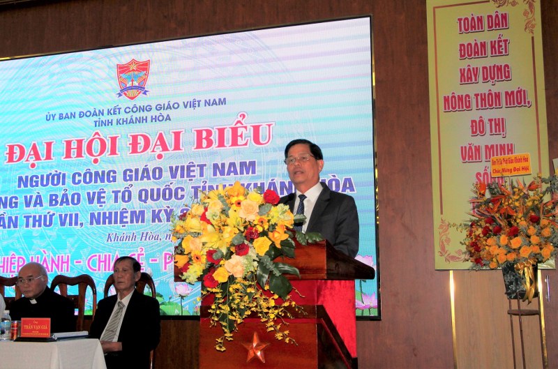 Phát biểu tại đại hội, ông Nguyễn Tấn Tuân ghi nhận, biểu dương những thành tích, đóng góp của Ủy ban Đoàn kết Công giáo Việt Nam tỉnh và toàn thể linh mục, tu sĩ, giáo dân đối với sự nghiệp đại đoàn kết toàn dân tộc, xây dựng quê hương Khánh Hòa. Chủ tịch UBND tỉnh cũng đề nghị thời gian tới, Ủy ban Đoàn kết Công giáo Việt Nam tỉnh cần tiếp tục làm tốt vai trò là cầu nối giữa đạo và đời, tập hợp đoàn kết đồng bào công giáo trong tỉnh, động viên đồng bào tham gia các phong trào thi đua yêu nước; thường xuyên tuyên truyền, phổ biến pháp luật, động viên các chức sắc, giáo dân tin tưởng vào sự lãnh đạo của Đảng, thực hiện nghiêm các quy định của Nhà nước, nêu cao tinh thần cảnh giác với mọi luận điệu xuyên tạc về nhân quyền, tôn giáo và hoạt động chống phá của những thế lực thù địch; thường xuyên nắm bắt tâm tư, nguyện vọng hợp pháp, chính đáng của đồng bào công giáo, phản ánh với cấp ủy, chính quyền, mặt trận và các cơ quan liên quan để xem xét giải quyết kịp thời… Ông Nguyễn Tấn Tuân cũng yêu cầu các cấp ủy Đảng, chính quyền địa phương, sở, ban, ngành, đoàn thể trong tỉnh tiếp tục tạo điều kiện thuận lợi để Ủy ban Đoàn kết Công giáo Việt Nam tỉnh thực hiện tốt chức năng, nhiệm vụ.