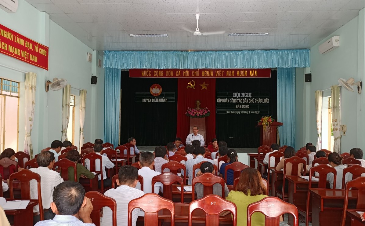Ngày 10/9/2020, Ban Thường trực Ủy ban MTTQ Việt Nam huyện Diên Khánh tổ chức Hội nghị tập huấn công tác Dân chủ - Pháp luật cho Chủ tịch, Phó Chủ tịch Ủy ban MTTQ Việt Nam 18 xã, thị trấn. Ông Hà Văn Đông - Ủy viên Ban Thường vụ Huyện ủy, Trưởng Ban Dân vận, Chủ tịch Ủy ban MTTQ Việt Nam huyện chủ trì hội nghị.