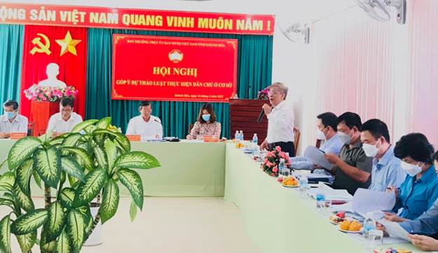 Ngày 14-3, Chủ tịch Ủy ban MTTQ Việt Nam tỉnh Khánh Hòa Trần Ngọc Thanh chủ trì Hội nghị góp ý dự thảo Luật thực hiện dân chủ ở cơ sở. Tham dự Hội nghị có các đại biểu là lãnh đạo các ban đảng, sở ngành, các đoàn thể chính trị - xã hội, Ủy ban MTTQ các huyện, thị, thành phố và các cơ quan liên quan.