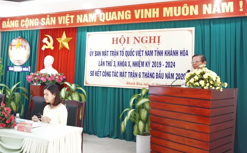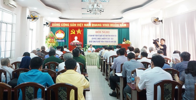 Sáng ngày 15-7, Ủy ban MTTQ Việt Nam tỉnh Khánh Hòa tổ chức hội nghị lần thứ 3 khóa X (nhiệm kỳ 2019 – 2024) và sơ kết công tác Mặt trận 6 tháng đầu năm 2020. Tham dự Hội nghị có các đồng chí: Hà Quốc Trị - Phó Bí thư Tỉnh ủy; ông Trần Ngọc Thanh- Ủy viên Ban Thường vụ Tỉnh ủy, Trưởng Ban Dân vân, đồng thời Chủ tịch Ủy ban MTTQ Việt Nam tỉnh; đại diện lãnh đạo các sở, ban, ngành; lãnh đạo các tổ chức thành viên; các ủy viên Ủy ban Trung ương MTTQ Việt Nam trên địa bàn tỉnh và ủy viên Ủy ban MTTQ Việt Nam tỉnh khóa X.