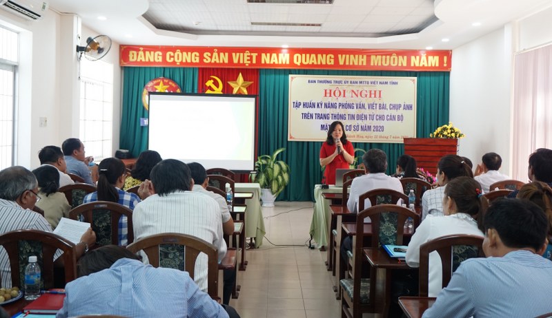 Triển khai Đề án 01 về đổi mới công tác thông tin, tuyên truyền trong hệ thống Mặt trận, sáng ngày 22/7, Ủy ban MTTQ tỉnh Khánh Hòa phối hợp với Báo Khánh Hòa tổ chức tập huấn kỹ năng phỏng vấn, viết tin, bài và chụp ảnh trên trang thông tin điện tử cho hơn 100 cán bộ Mặt trận cơ sở.