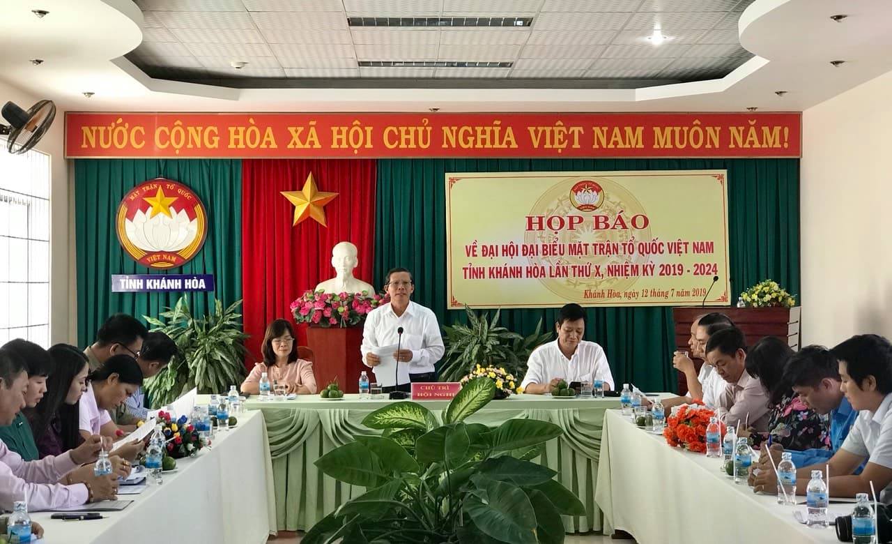 Chiều ngày 12/7/2019, Ban Thường trực Ủy ban MTTQ Việt Nam tỉnh Khánh Hòa tổ chức họp báo về Đại hội đại biểu MTTQ Việt Nam tỉnh Khánh Hòa lần thứ X, nhiệm kỳ 2019- 2024. Ông Trần Ngọc Thanh - Ủy viên Ban Thường vụ Tỉnh ủy, Chủ tịch Ủy ban MTTQ Việt Nam tỉnh chủ trì họp báo.