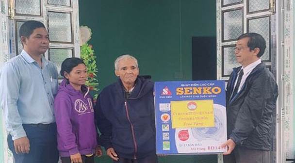 Ông Cao Ngọc Tâm trao quà và bàn giao nhà cho một hộ dân tại xã Sơn Trung