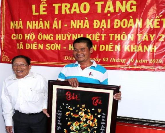 Năm 2019 với chỉ tiêu của Mặt trận Tổ quốc xã Diên Sơn là xây dựng 02 ngôi nhà Đại đoàn kết từ nguồn quỹ “Vì người nghèo” của địa phương, cảm thấy số tiền qua ít nếu xây 02 nhà với trị giá 50 triệu một nhà thì số tiền sẽ về âm. Nhưng trong 02 hộ được xây có 01 hộ không đủ khả năng đối ứng vốn. Nhớ lại câu chuyện hồi cuối năm 2018 của ông Đinh Công Thạnh tôi đã mạnh dạng chủ động gọi điện và gõ lời với ông; tôi nhớ lúc tôi gọi điện là tầm khoảng 8h 30 sáng ngày 15/4/2019 thì ông đến gặp tôi lúc 9h để bàn về vấn đề. Qua buổi làm việc tôi đã đưa ông đến hộ ông Huỳnh Kiệt thường trú thôn Tây 2 xã Diên Sơn là hộ nghèo của xã có 01 con bị bại não đang hưởng chế độ trợ cấp xã hội tại địa phương. Sau khi khảo sát tình hình chúng tôi chia tay và ông có nói “Tôi chọn hộ này”. Trong 01 tháng sau đó tổng cộng có 5 đợt khảo sát của các tổ chức được ông đưa đến, mỗi lần đều không thể thiếu ông và mỗi lần đến thăm hộ đều vào lúc trưa nắng nóng và mỗi lần nhưng vậy tôi cảm thấy dường như ông thở không nổi, tôi có hỏi “Chú có sao không, sức khỏe chú ổn không, nếu không để cháu đi được rồi” nhưng ông đều trả lời “Không sao, nếu xây được nhà cho người nghèo là chú vui rồi” và cứ thế hai tháng trôi qua với các cuộc khảo sát cuối cùng Hội bảo trợ người tàn tật trẻ mồi côi bệnh nhân nghèo tỉnh Khánh Hòa cũng quyết định cùng Ủy ban MTTQ xã Diên Sơn xây nhà Nhân Ái cho hộ ông Huỳnh Kiệt thường trú thôn Tây 2 xã Diên Sơn, ông đã thở phào nhẹ nhỏm.