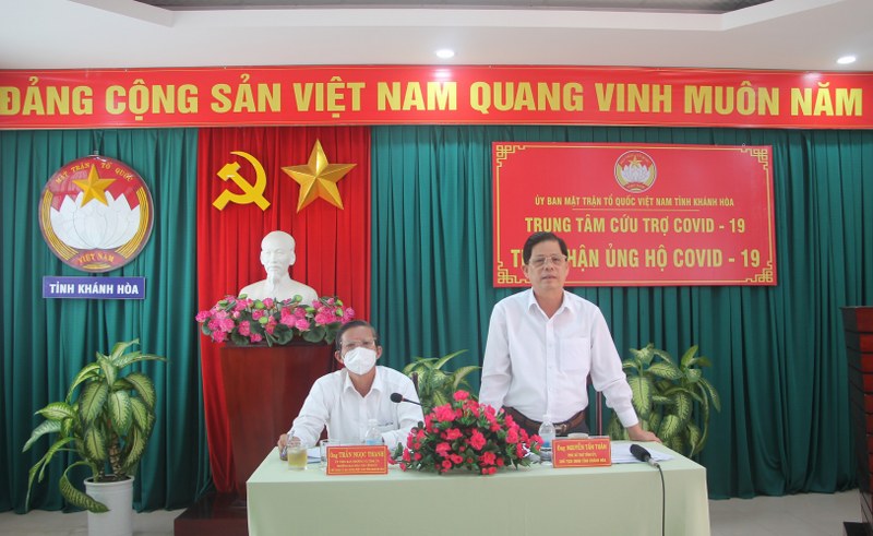 Sáng ngày 23/8, ông Nguyễn Tấn Tuân - Phó Bí thư Tỉnh ủy, Chủ tịch UBND tỉnh Khánh Hòa làm việc với các thành viên Trung tâm Cứu trợ Covid-19 tỉnh. Tham dự có ông Trần Ngọc Thanh - Ủy viên Ban Thường vụ Tỉnh ủy, Trưởng Ban Dân vận Tỉnh ủy, Chủ tịch Ủy ban Mặt trận Tổ quốc Việt Nam tỉnh.