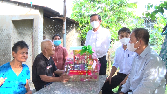 Sau buổi làm việc, ông Trần Ngọc Thanh đã đến thăm hỏi và tặng 03 suất quà cho 03 gia đình chính sách xã Khánh Nam.