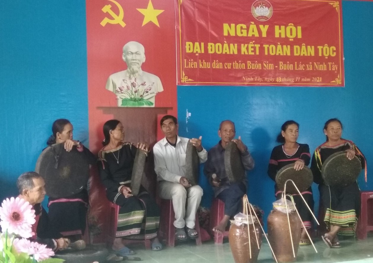 Tiết mục Cồng chiên do các nghệ nhân của Buôn trình bày