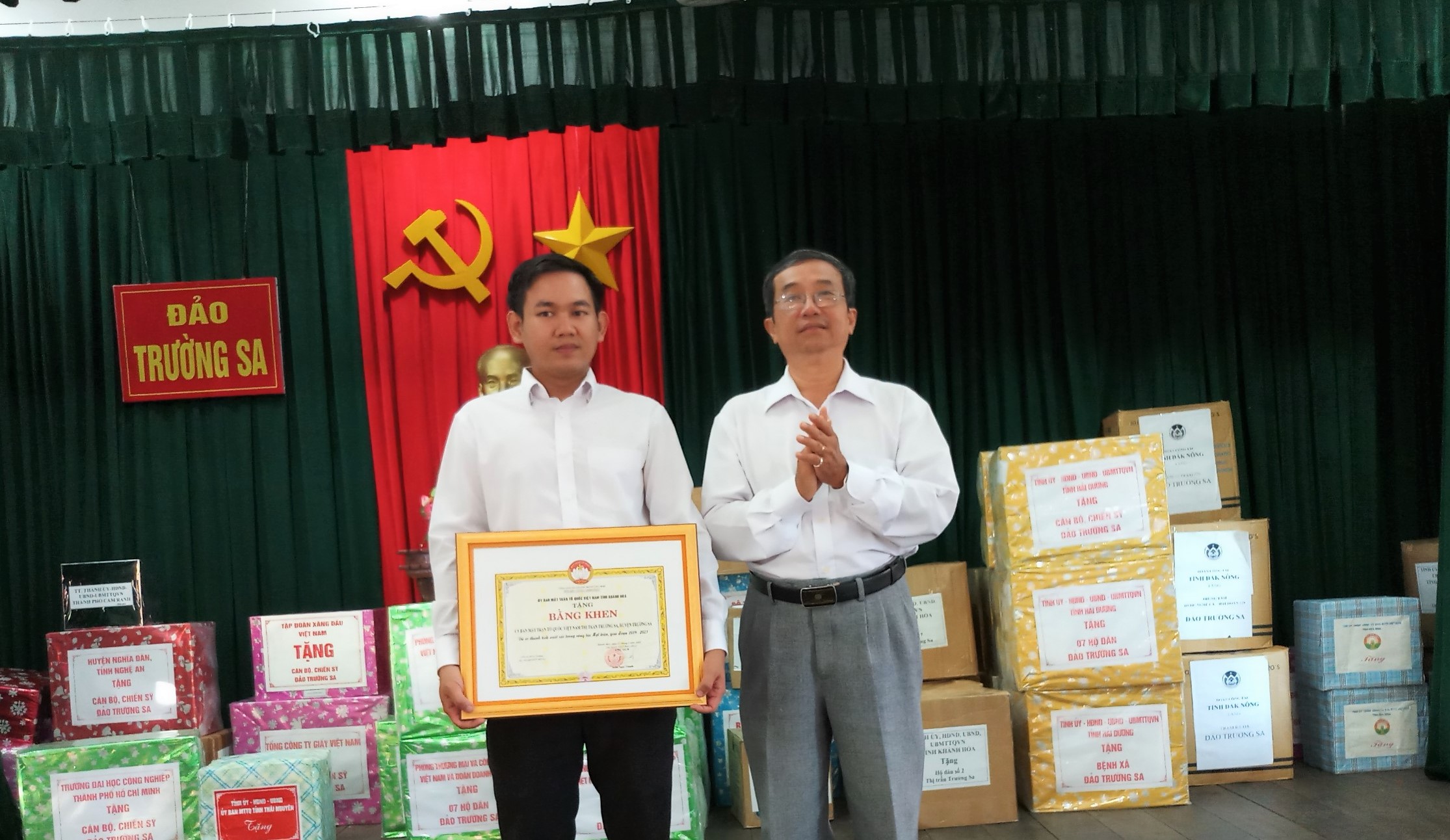Nhân dịp này, ông Cao Ngọc Tâm - Phó Chủ tịch Ủy ban MTTQ Việt Nam tỉnh đã trao bằng khen của Ủy ban MTTQ Việt Nam tỉnh cho các tập thể Ủy ban MTTQ Việt Nam xã Trường Sa Lớn, Song Tử Tây, Sinh Tồn đã có thành tích xuất sắc trong công tác Mặt trận giai đoạn 2019-2021.