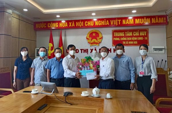 Sáng 3-9, tại thị xã Ninh Hòa, ông Nguyễn Tấn Tuân - Phó Bí thư Tỉnh ủy, Chủ tịch UBND tỉnh, ông Trần Ngọc Thanh - Chủ tịch UBMTTQ Việt Nam tỉnh, Trưởng ban Dân vận Tỉnh ủy đã thăm, động viên, tặng nhu yếu phẩm cho 100 tình nguyện viên (thanh niên, phụ nữ) có hoàn cảnh khó khăn trên địa bàn thị xã Ninh Hòa trong khuôn khổ chương trình Tiếp sức tuyến đầu chống dịch.